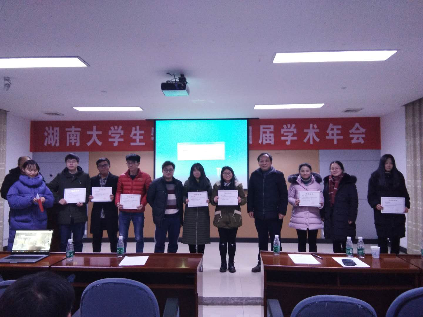中午12:40,学院津湘创新奖学金评审委员会按照《必赢线路检测中心津湘创新奖学金实施办法》文件精神,结合教授委员会的评分,对第一届“津湘创新奖学金”申报人选进行了评选,博士研究生雷正丽、硕士研究生赵传、本科生方若名获得了第一届“津湘创新奖学金”。中午1:00,学院学术墙报评审委员会在参观学术墙报展后对参评的14个学术墙报进行了评审,最终张振旺、盛旭楠等同学获得了优秀学术墙报。下午学术报告结束后,院领导为获奖同学颁发了奖金和荣誉证书。